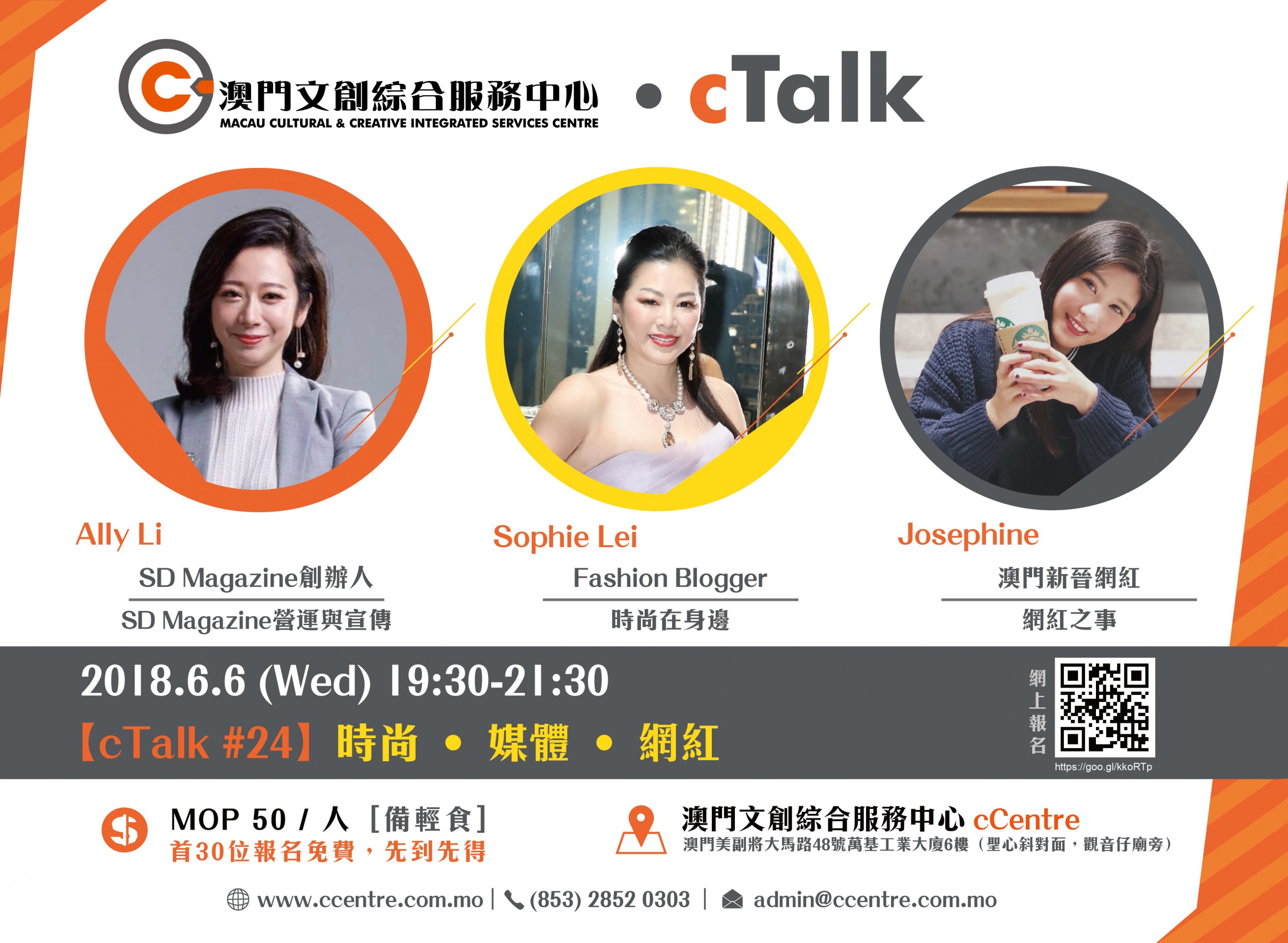 地 點:澳門美副將大馬路48號萬基工業大廈六樓澳門文創綜合服務中心cCentre