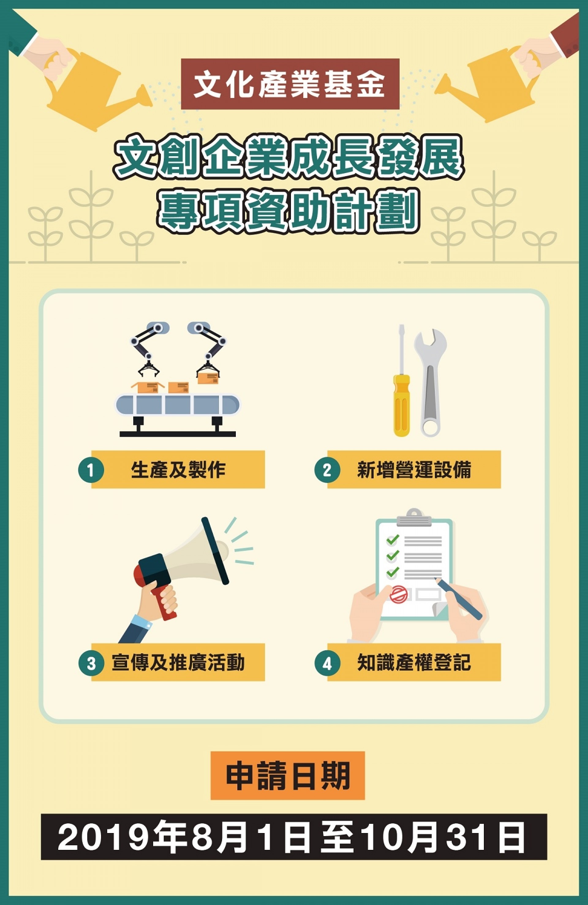 計劃簡介 為創造良好的營商環境,鼓勵本澳的文創企業向商業運作轉型及向規模化發展,文化產業基金(下簡稱「基金」)推出《文創企業成長發展專項資助計劃》,以降低澳門文創企業的營運成本,協助其成長發展,促進本澳文化產業的多元發展。