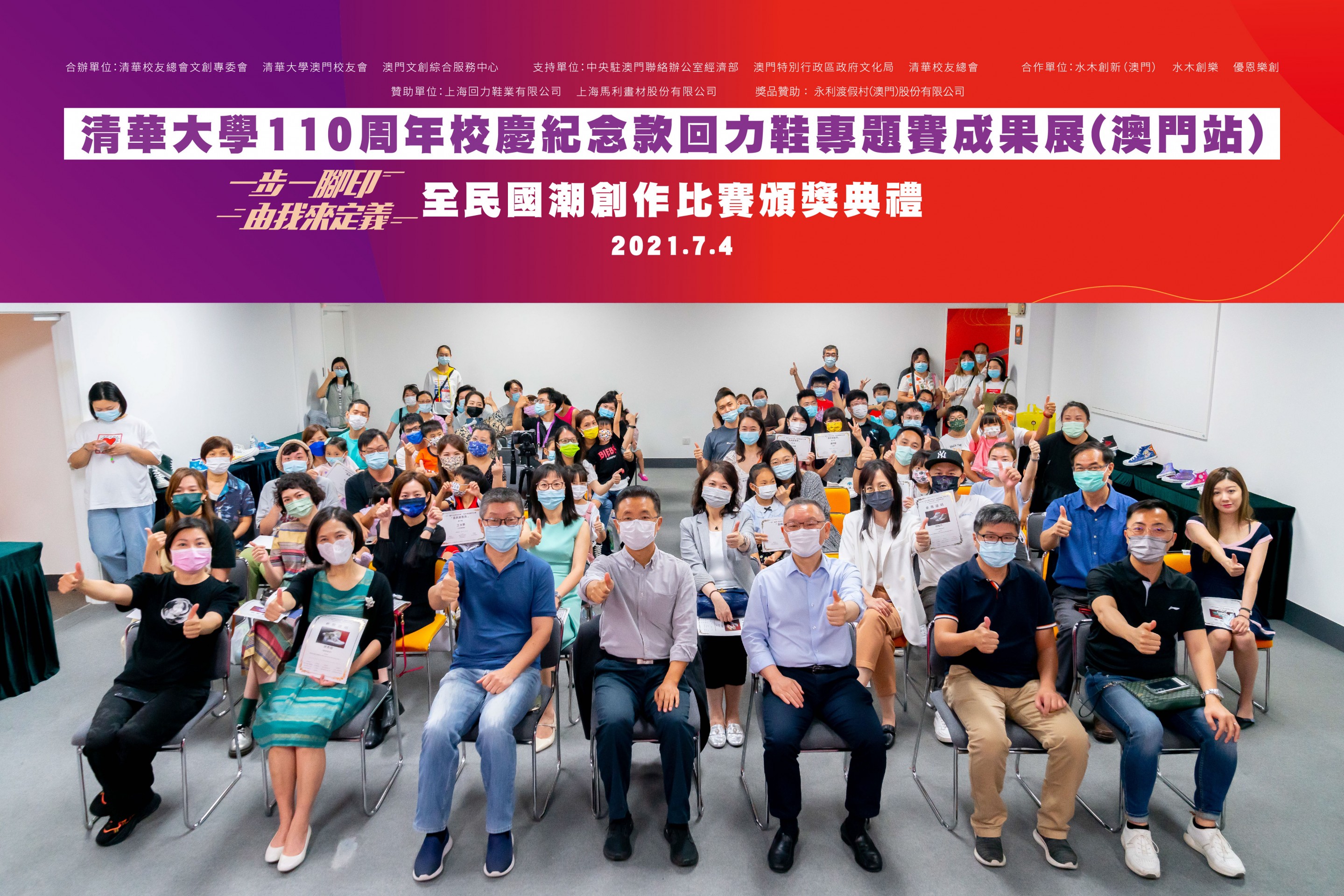 〝清華大學110周年校慶紀念款回力鞋〞專題賽成果展(澳門站)暨〝一步一腳印 由我來定義〞全民國潮創作比賽於七月四日下午六時假澳門文創綜合服務中心舉行頒獎典禮,是次活動由清華校友總會文創專委會、清華大學澳門校友會、澳門文創綜合服務中心共同合辦,分為展覽、全民國潮創作體驗、創作比賽三部分,以澳門文創與百年國潮品牌聯動,向大眾推廣創意,推動文創發展。