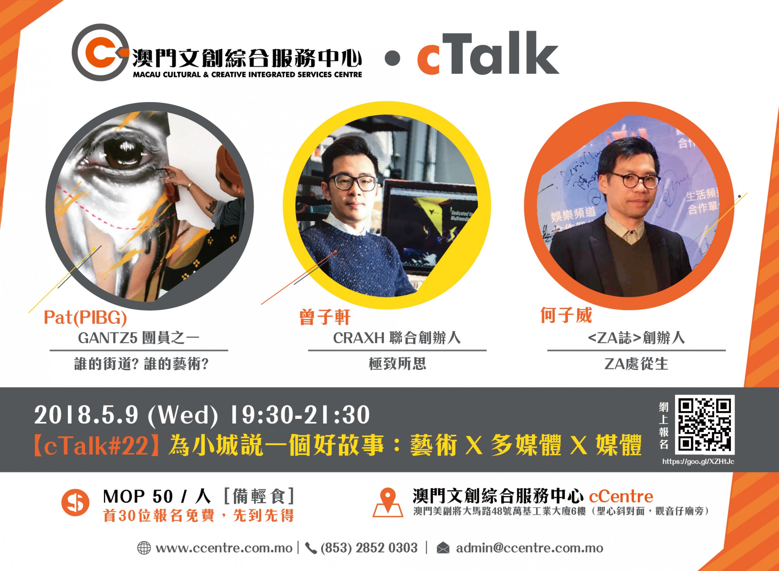 地 點:澳門美副將大馬路48號萬基工業大廈六樓澳門文創綜合服務中心cCentre