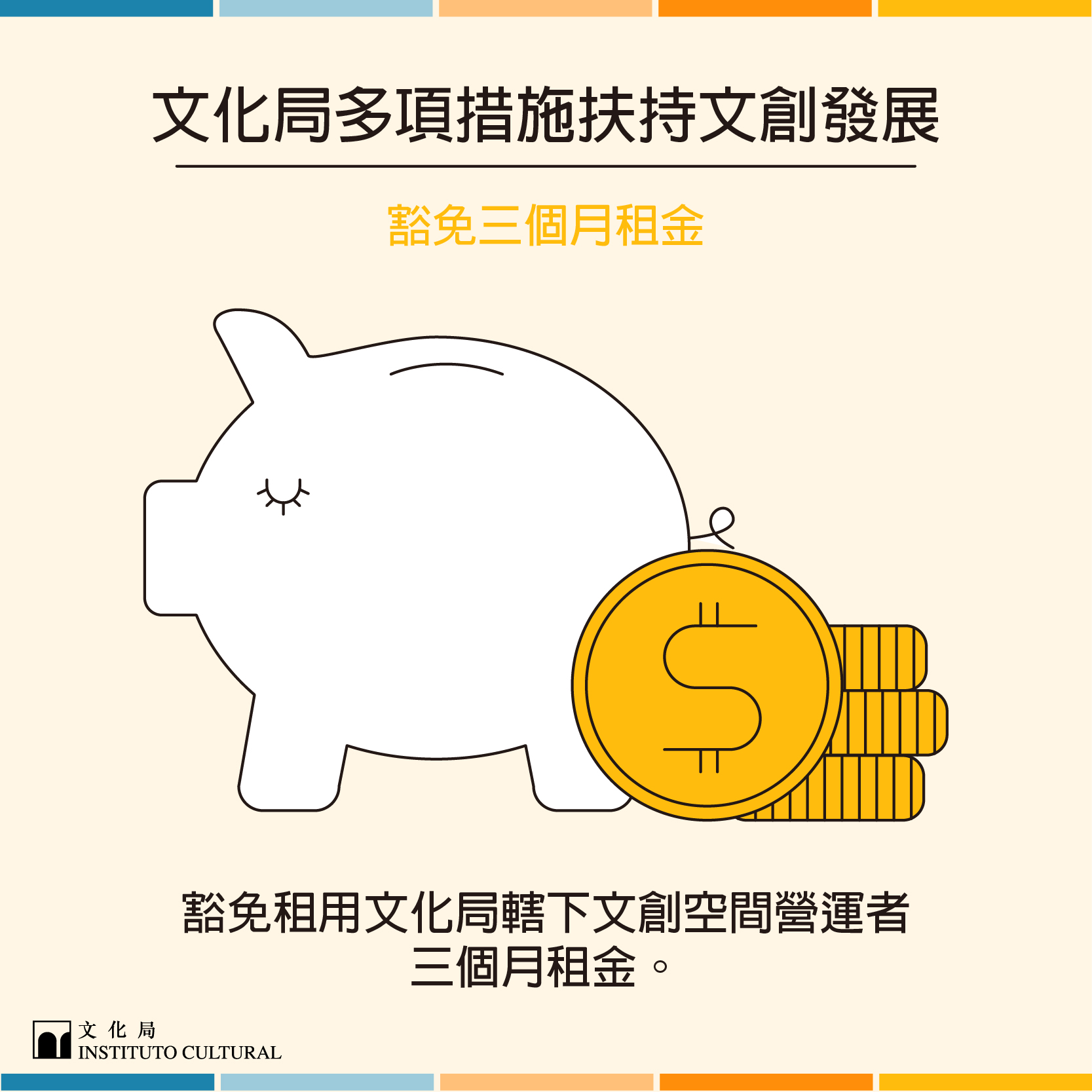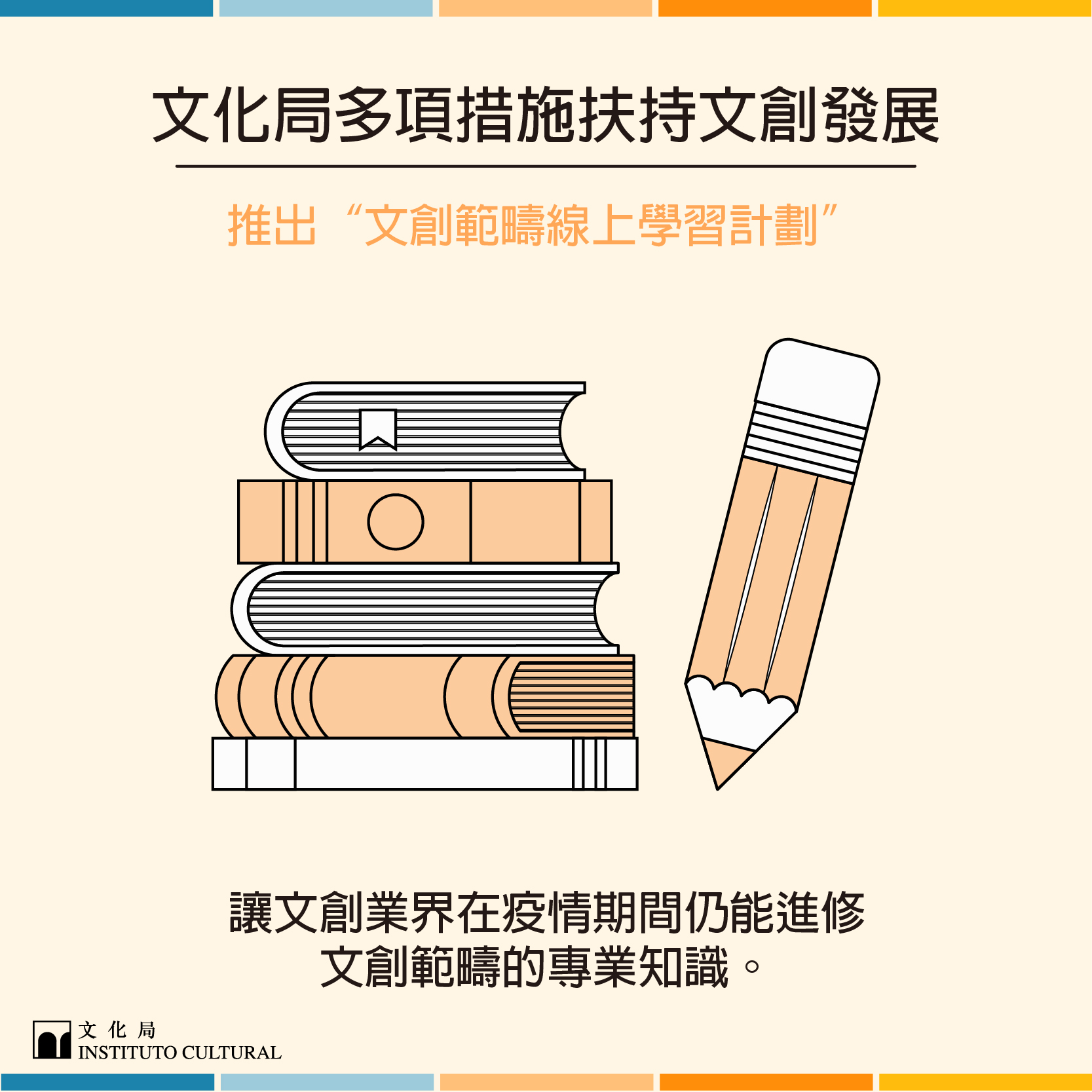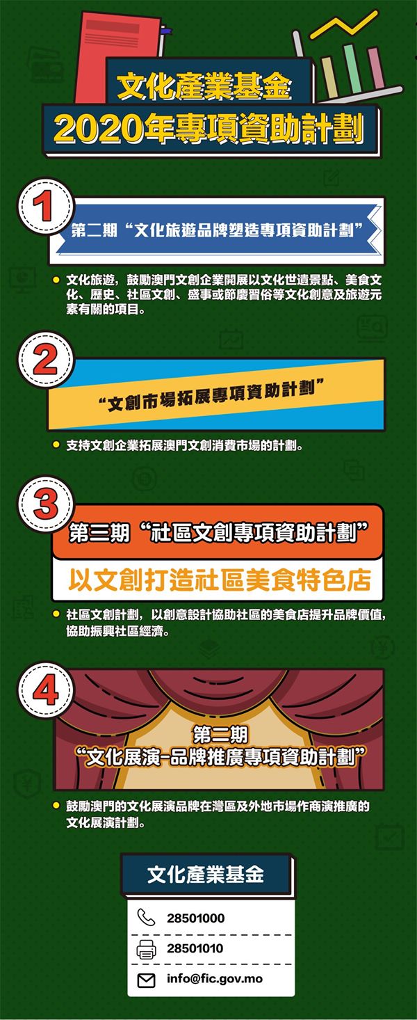 自新冠肺炎疫情爆發以來,澳門各行各業深受影響;在抗疫期間,文化局及文化產業基金持續關注業界情況,配合特區政府推出一系列扶助措施,助文創業界渡過因疫情造成的經濟難關。