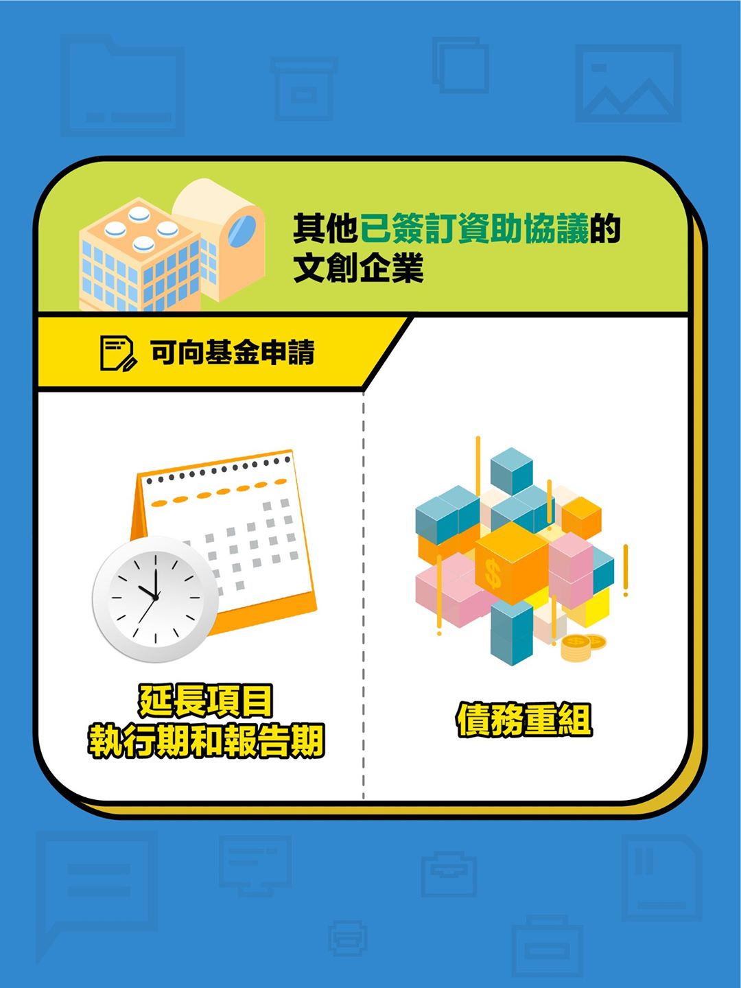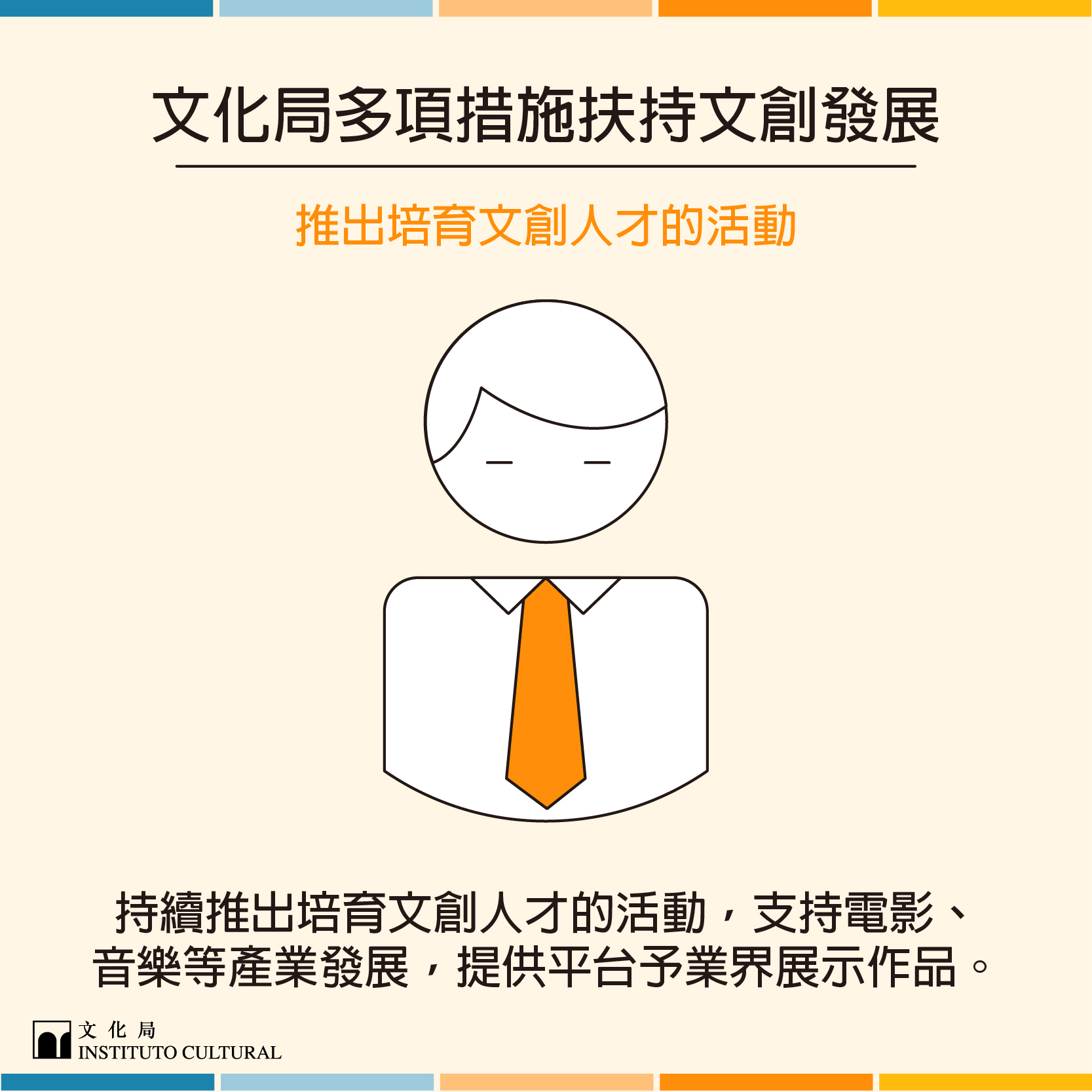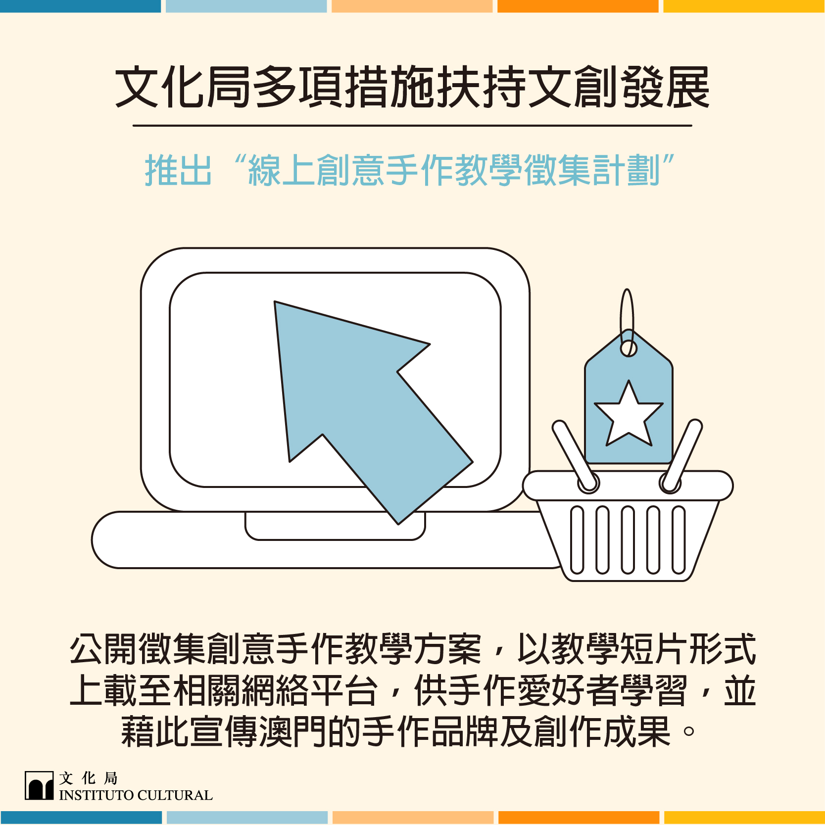 自新冠肺炎疫情爆發以來,澳門各行各業深受影響;在抗疫期間,文化局及文化產業基金持續關注業界情況,配合特區政府推出一系列扶助措施,助文創業界渡過因疫情造成的經濟難關。
