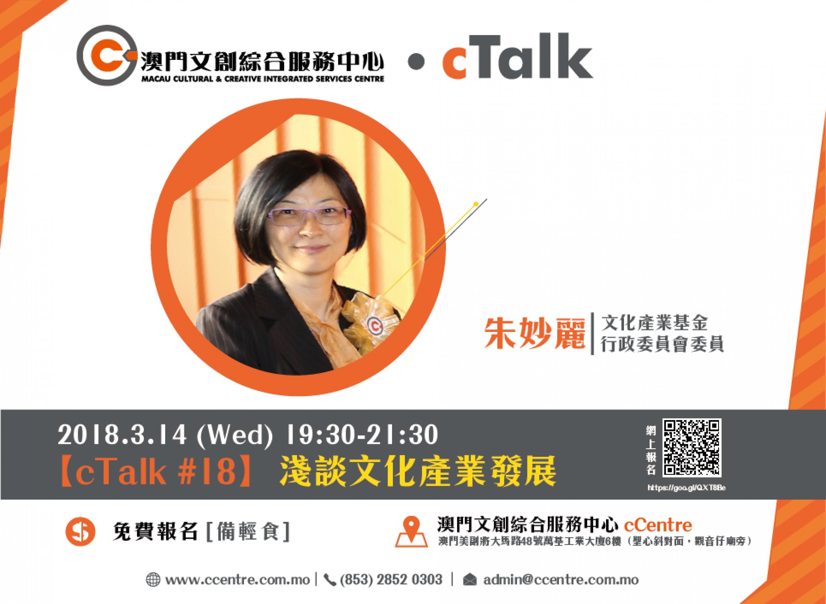 地 點:澳門美副將大馬路48號萬基工業大廈六樓澳門文創綜合服務中心cCentre