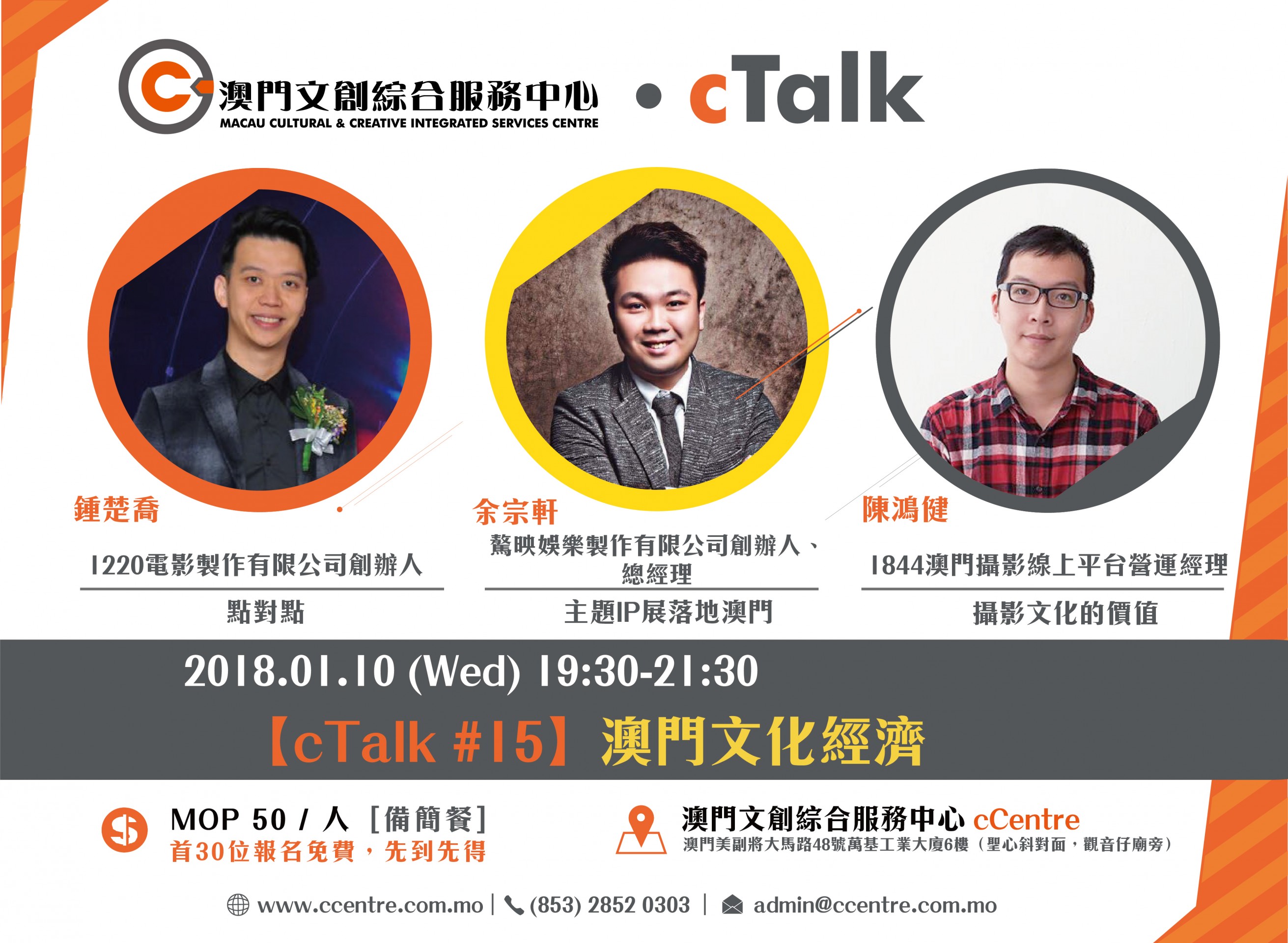 【cTalk#15】分享重點:講述在澳門投身文創的貼身經歷,多年來走過的路程分享,以及如何將看似毫無關係的成長點滴,連結在人生創作路上。以點對點形式讓澳門電影成為產業輸出海外,完善本地電影產業鏈。